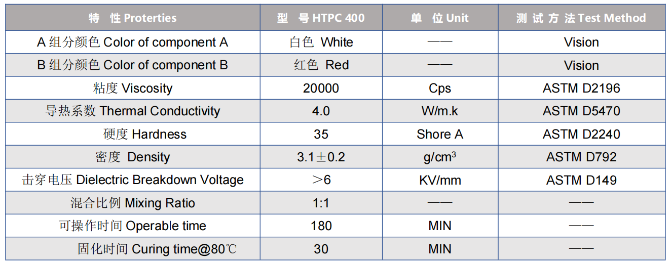 HTPC 400 is a two-component additive silicone system of thermal conductivity potting compound adhesive,